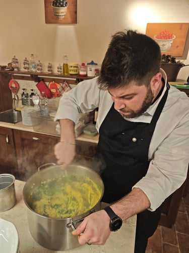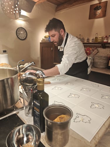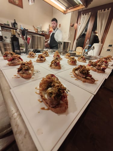 Dall'allestimento della tavola, alla spesa, alla preparazione dei pasti dall'antipasto al dolce e in fine all'abbinamento dei vini.
